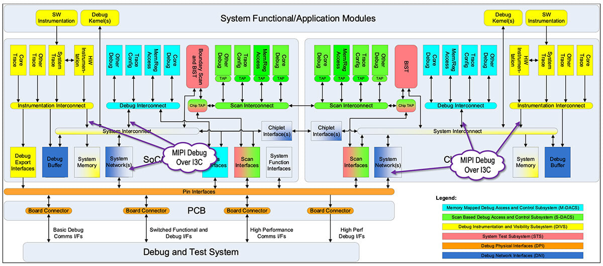 MIPI Debug Over I3C allows system designers to efficiently and dynamically debug and test application processors, power management integrated circuits, modems and other power-managed components across a system of any size via the low-bandwidth MIPI I3C® interface, which requires a minimal set of pins.